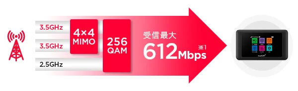 همچنین این مودم از باندهای فرکانسی متعدد میکند، فناوری “4×4 MIMO” که از چهار آنتن برای هر دستگاه و ایستگاه پایه را برای برقراری ارتباط همزمان چند داده استفاده میکند و داده هایی که میتوانند به طور همزمان با افزایش تراکم اطلاعات منتقل شوند. مودم Pocket WiFi 602hw از فناوری “256QAM” نیز پشتیبانی میکند. این مودم از بالاترین استانداردهای سلامتی بهره میبرد.